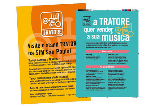 Marca e identidade visual para Tratore, distribuidora brasileira de música independente, com aplicações em projeto de catálogos, website, papelaria, peças gráficas e digitais de divulgação, peças publicitárias, coleções de produtos, sinalização de eventos.
